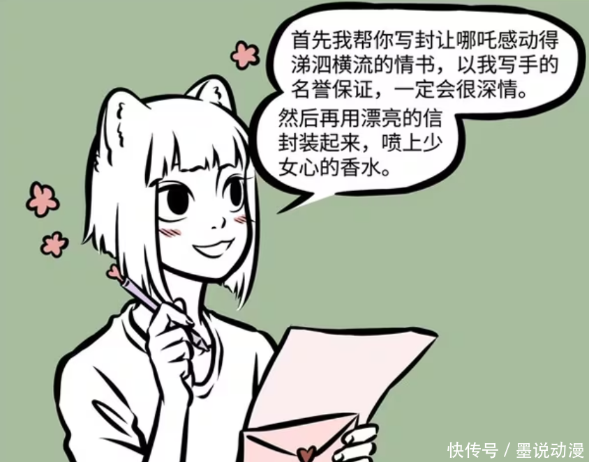 谁能想到九月用写信的方式来帮助小女孩表白,还要写一封让哪吒感动得涕泗横流的情书。九月表示她有手写名誉保证,一定会很深情。九月觉得写完漂亮的情书之后,封装起来,再碰上少女心的香水,那肯定能成功。